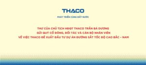 THƯ CỦA CHỦ TỊCH HĐQT THACO TRẦN BÁ DƯƠNG VỀ VIỆC THACO ĐỀ XUẤT ĐẦU TƯ DỰ ÁN ĐƯỜNG SẮT TỐC ĐỘ CAO BẮC – NAM